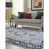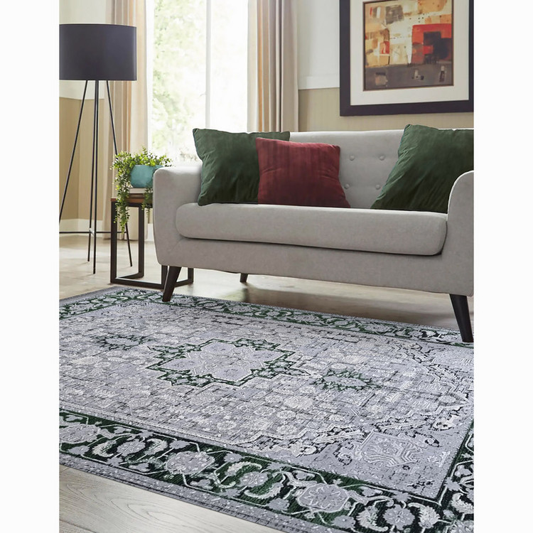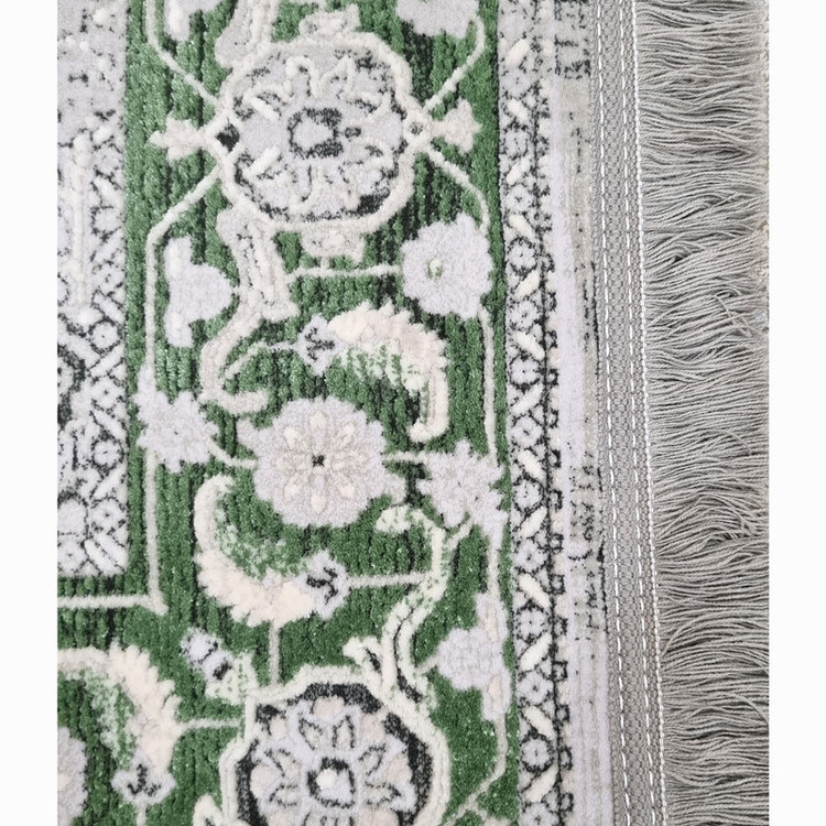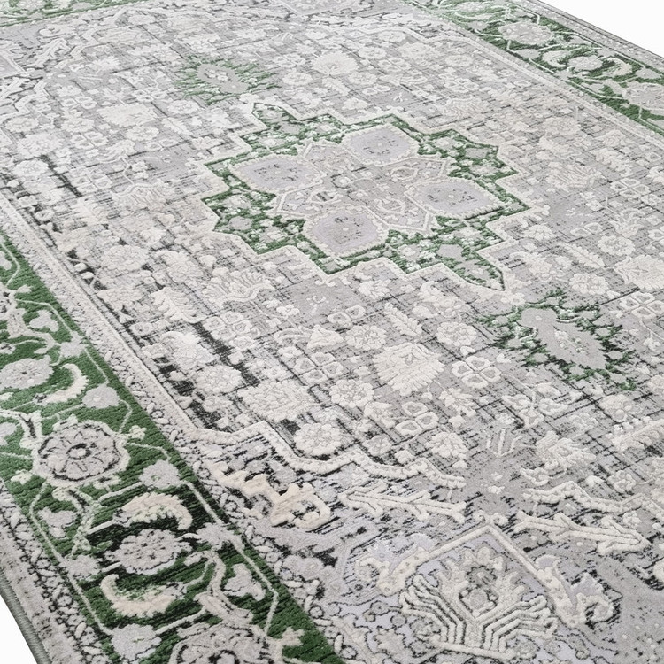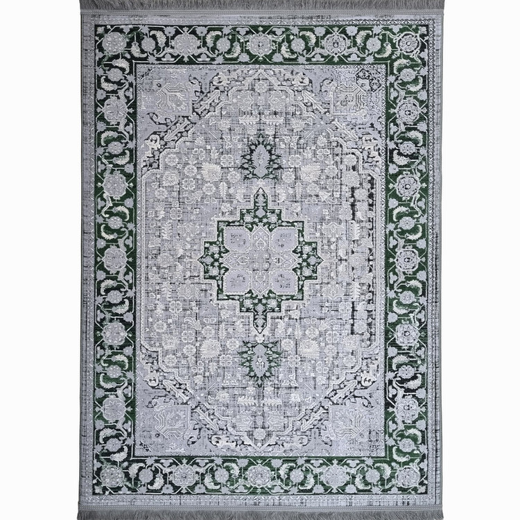 قالیچه ماشینی 1200 شانه ایپک زمینه طوسی حاشیه سبز مدل وینتیج(قالیچه وینیتیج)
