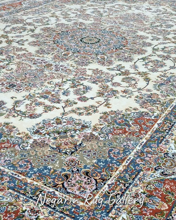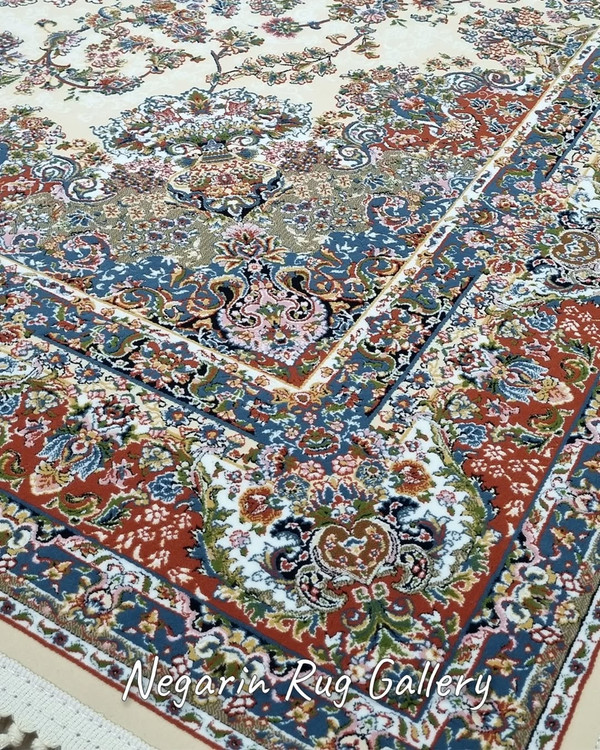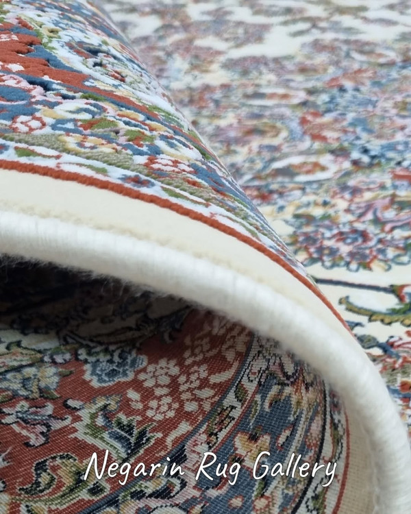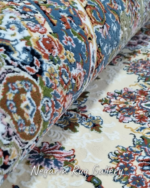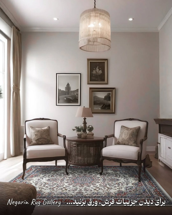 ✨ تصور کنید وارد اتاقی میشوید که نور ملایم روی زمینه کرم این فرش کلاسیک تابیده… نقشهای برجسته و اصیل، درست مثل تابلوهای هنری روی زمین، شما را به دنیایی از ظرافت و آرامش میبرند.