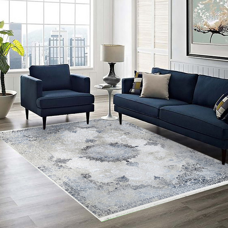 فرش ماشینی 1200 شانه نقش برجسته – زمینه کرم با نقوش سورمهای 1.5×2.25 متر(فرش وینتیج کرم)