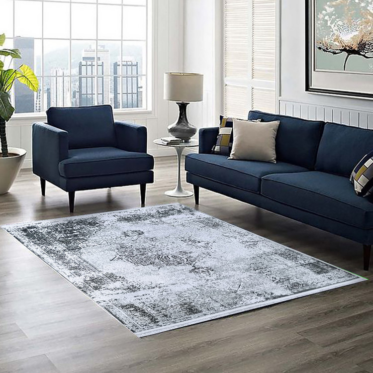 قالیچه ماشینی 1200 شانه سبک وینتیج – طوسی روشن الیاف اکرولیک 1×1.5 متری کد 545 (قالیچه مدرن خاکستری)
