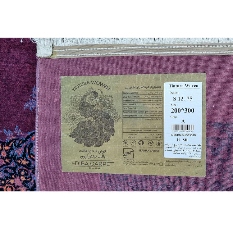 - فرش ماشینی طرح ترنج بنفش رنگ سایز ۲×۳ متر(فرش بنفش 6 متری)