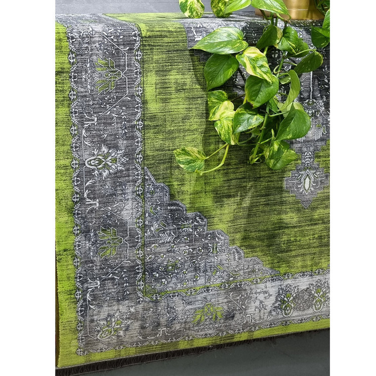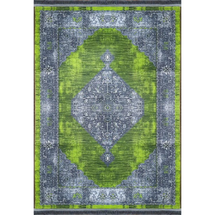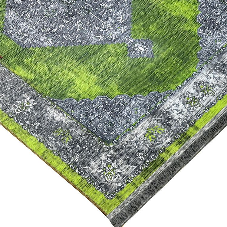 این قالیچه با ترکیب سبز نسبتاً جیغ و طوسی خنثی، یه تضاد رنگی جذاب ایجاد کرده که هم چشم رو درگیر میکنه، هم فضا رو از یکنواختی درمیاره.