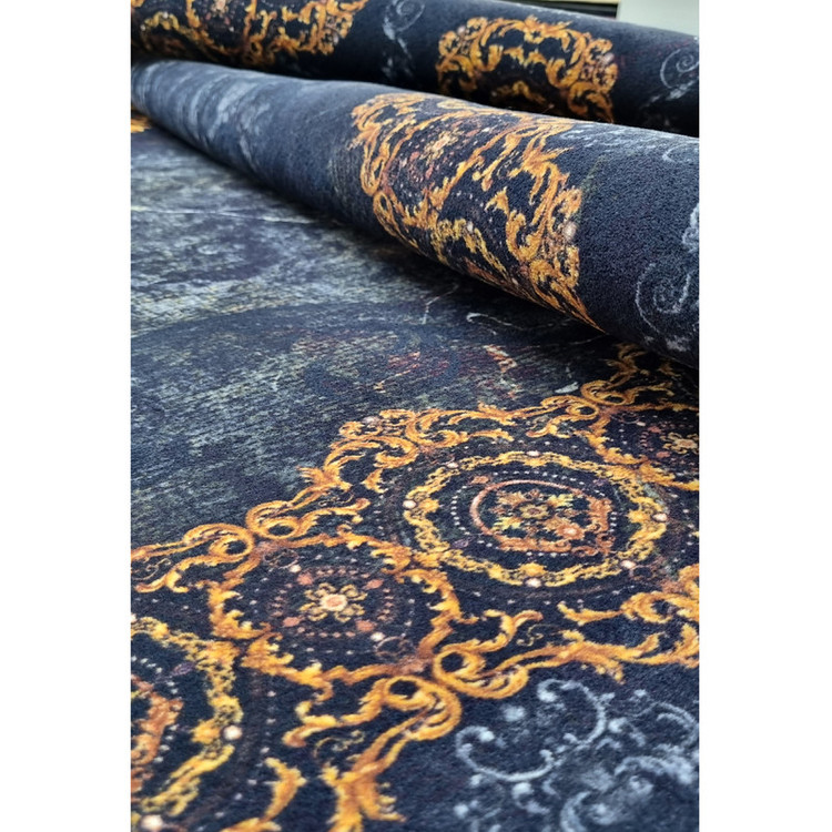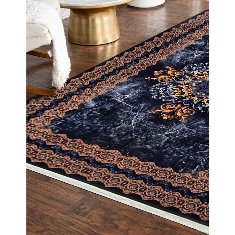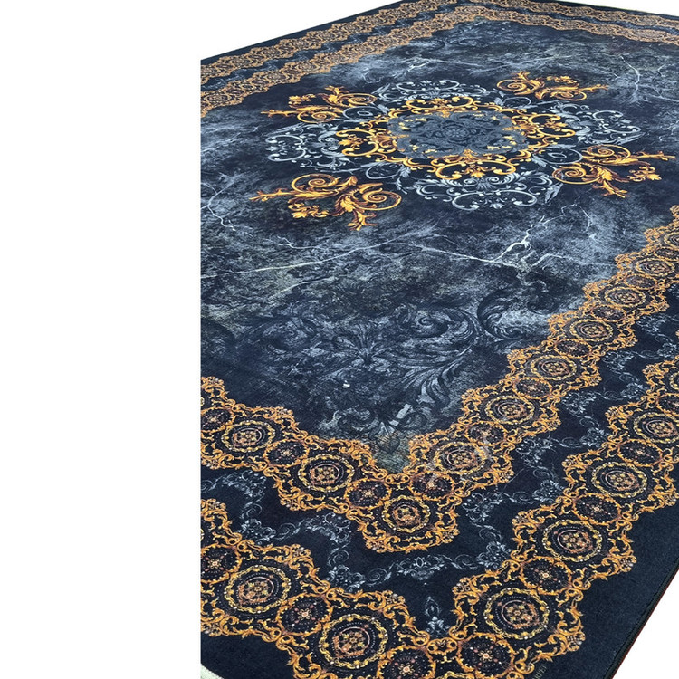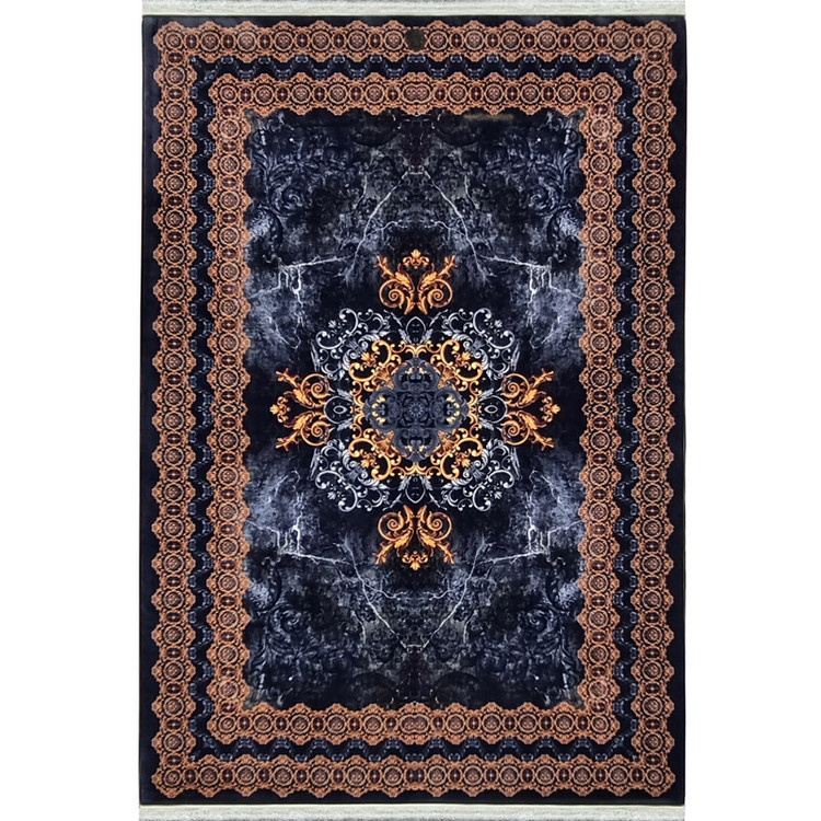 فرش ماشینی طرح ترنج کلاسیک سرمهای–مسی ابعاد 2*3(فرش 6 متری وینتیج)