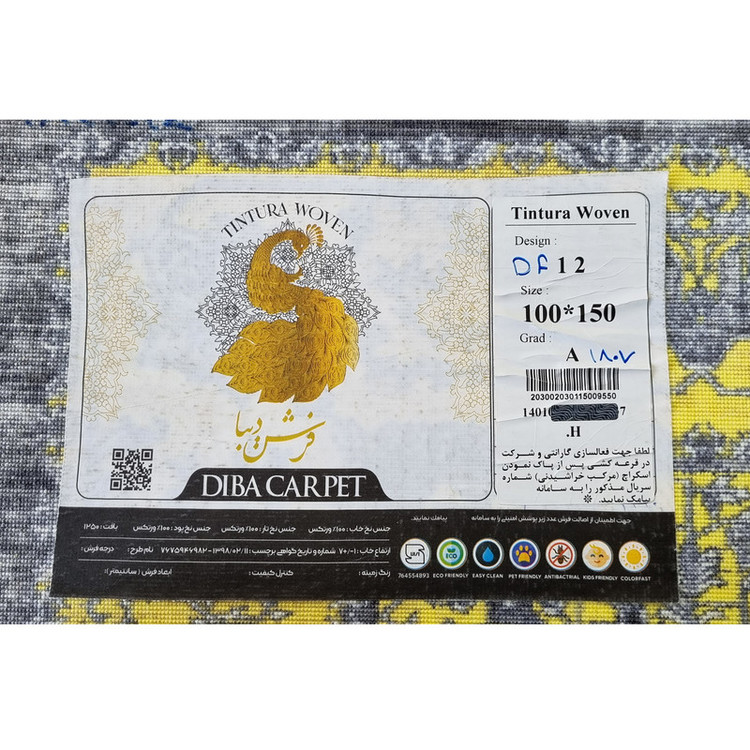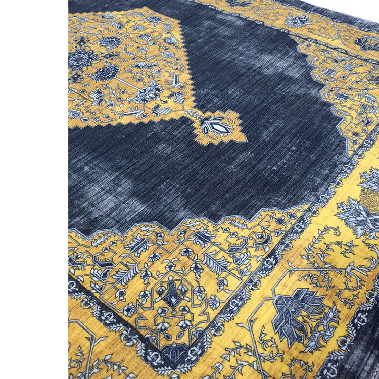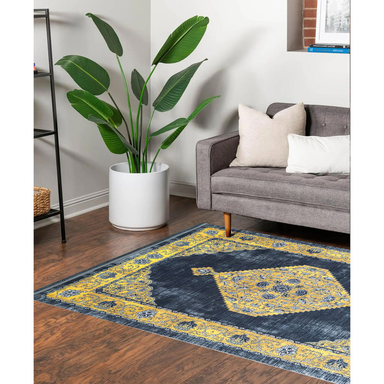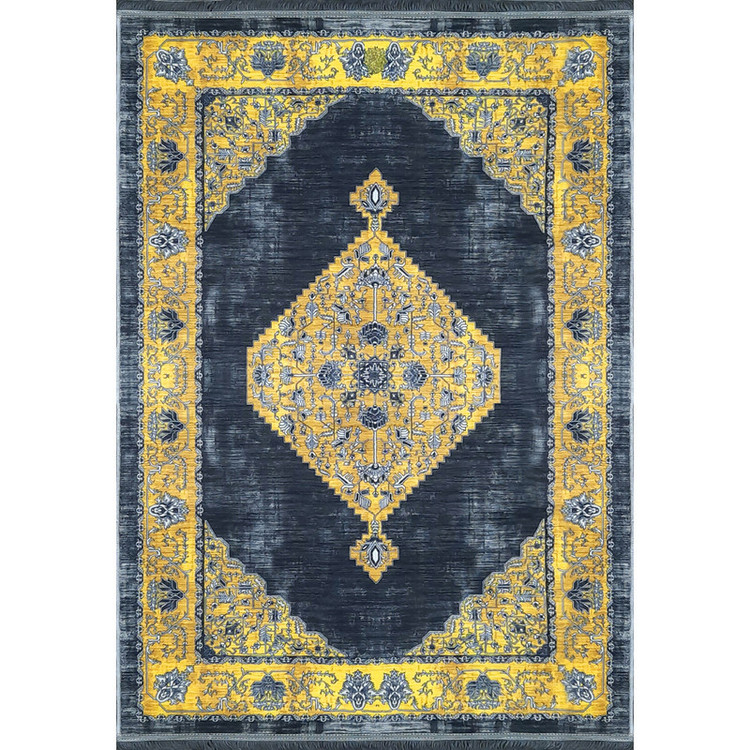 قالیچه ماشینی وینتیج طوسی و زرد – سایز ۱×۱.۵ متر(قالیچه زرد)