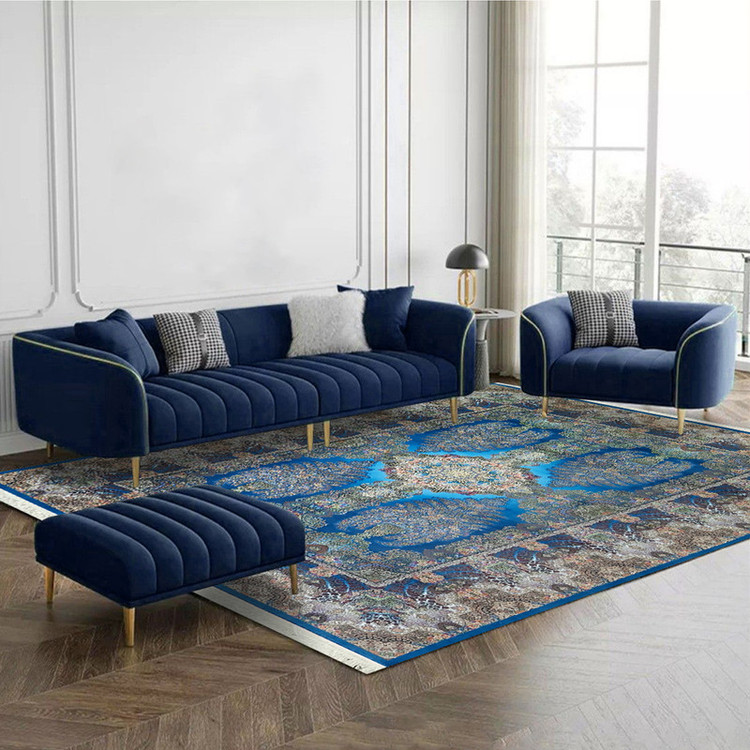 - فرش ماشینی کلاسیک نقش چهارباغ ابعاد2*3(فرش سنتی آبی)