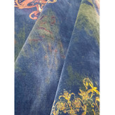 فرش وینتیج ترنج مدرن زمینه سورمه‌ای ابعاد۱.۵×۲.۲۵ نقوش سبزآبی و نارنجی(فرش مدرن تیره)