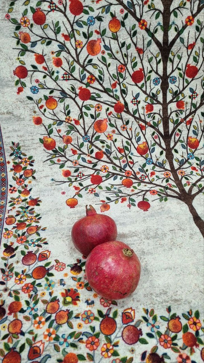 در دل این فرش، درختیست که ریشه در فرهنگ و خاطره دارد؛ شاخههایش گسترده، برگهایش پرشور، و میوههای انارش سرخ و شیرین، چون وعدههای مهر در خانهای گرم.