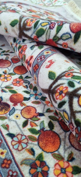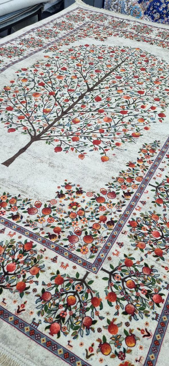 فرش ماشینی درخت انار 700 شانه زمینه کرم ابعاد 1.5*2.25