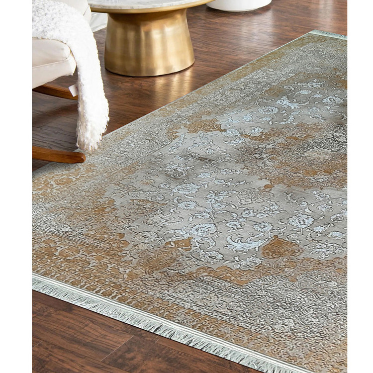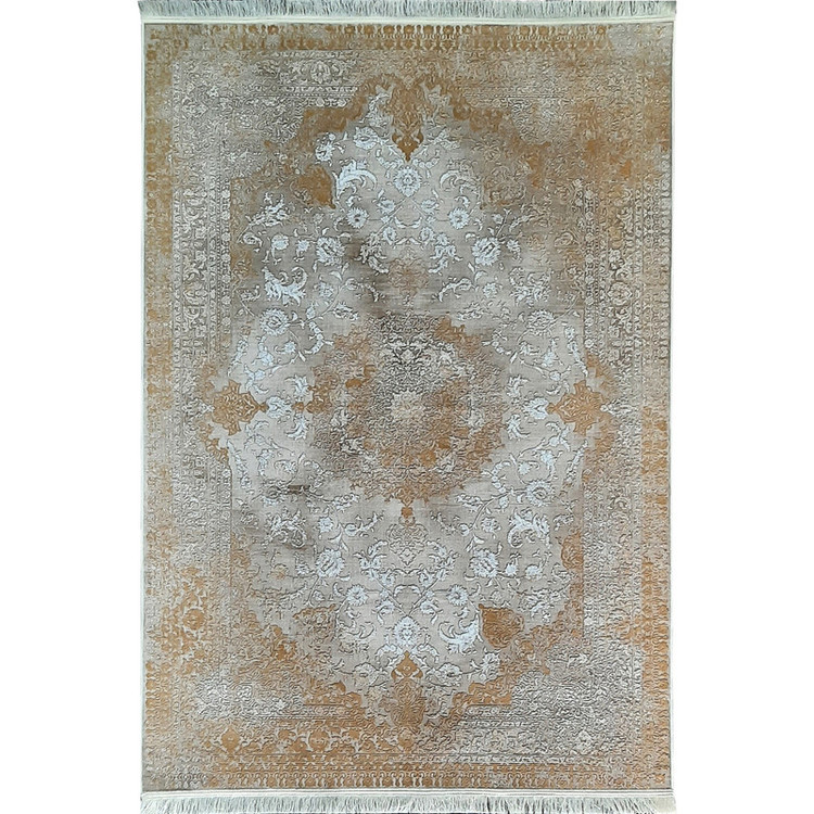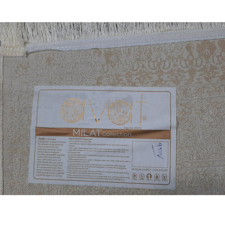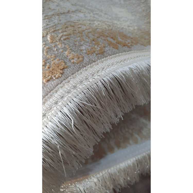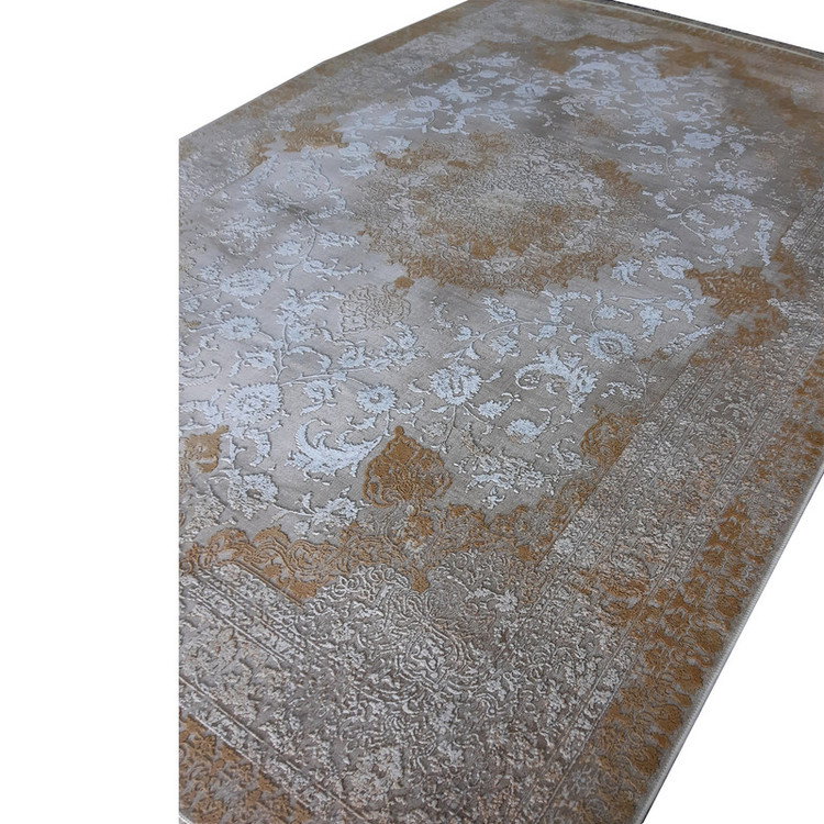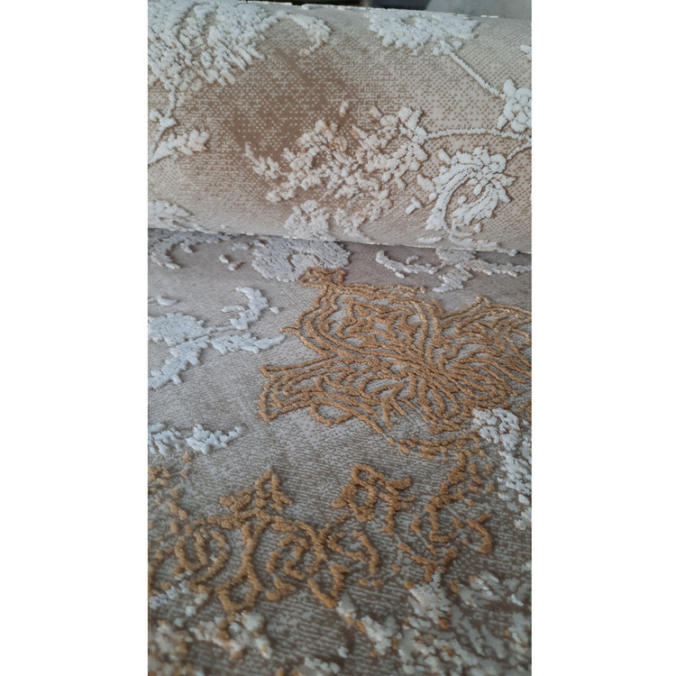 فرش ماشینی ۴ متری آوات | نقش برجسته وینتیج | رنگ نسکافهای و نقوش طلایی با الیاف اکرولیک کد 9217(فرش کرم نئوکلاسیک)